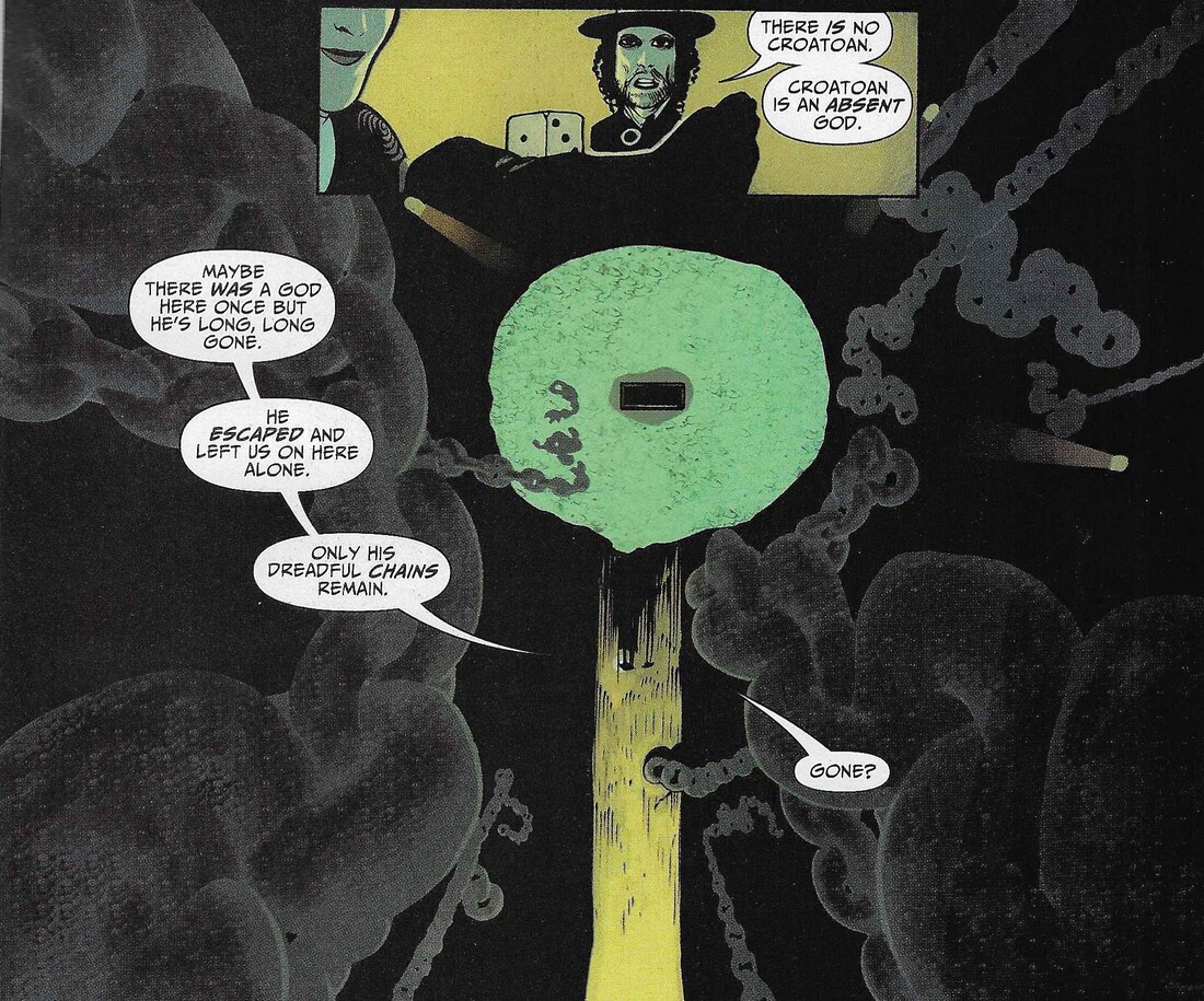 Ebeneezer and Klarion ride Fear-Naught to the place where Croatoan is. We probably shouldnât be surprised that itâs the place where No-Beard and All-Beard fought their final battle. This is where we see No-Beard, dead, which means that the bald pirate at the end of The Manhattan Guardian #2 was All-Beard.