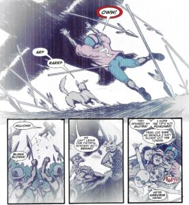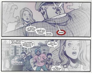That seems kind of flawed, but maybe it makes sense. Speaking of which, something I missed the first time around is that Suzi is pregnant. She is holding her belly in two different panels, and in one, sheâs obviously pregnant. But whoâs the father???? Could it be the other member of the group who doesnât want to play kidsâ games anymore? Could it????