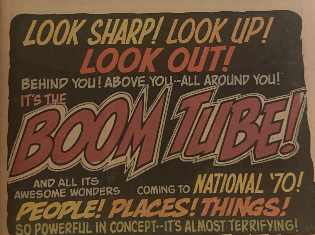 If I’d been reading comics back then, I don’t think this ad would have excited me any. I wasn’t plugged in to whatever grapevines and fanzines existed in 1970; lots of fans probably knew who “the great one” was but for me it could as easily have been Galactus as Jack Kirby. And what was the Boom Tube — a new character? A series? I admit even if they’d mentioned Kirby’s name it wouldn’t have meant much to me, but still — why not mention it? They did with Ditko.