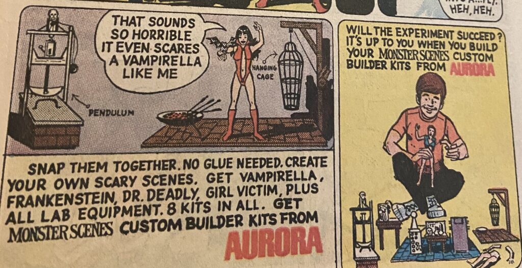 I’m guessing that the ordinary model kits were losing their luster so they were trying something new. While I never bought this one β I still wasn’t reading comics at the time (this is from an issue I picked up years later) β it’s certainly more interesting than most of the earlier offerings.