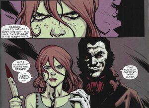 He doesn’t try to hide his vampirism as much, which makes him look much more indomitable. It allows Albuquerque to show not only Skinner’s evil, but Pearl’s toughness, as she is not scared of him at all when they face off, and because Albuquerque draws her as a much sweeter-looking human, their confrontations stand out nicely.
