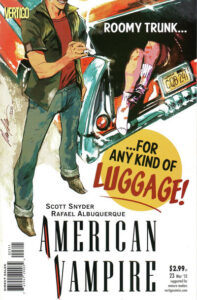 When we consider which four-color masterpieces deserve to live in the hallowed halls of Comics You Should Own, we think about different things for each potential entrant. For something like American Vampire, which is Snyder’s longest comics work, even now, we could consider the hook, which is clever: a man who grew up in the United States and was turned into a vampire in the States becomes something different and unusual from your standard vampire, and things get weird.