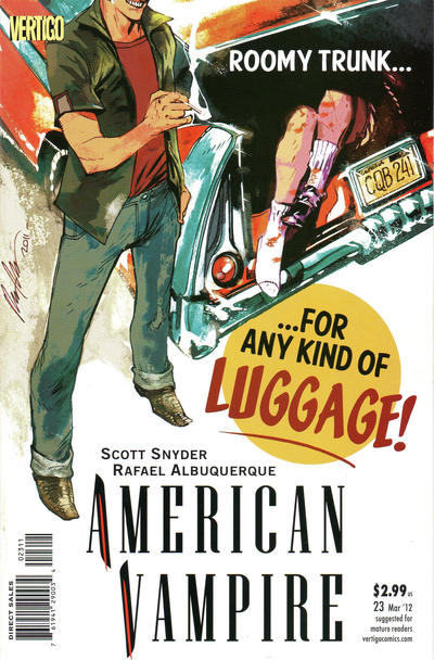Published by DC, 67 issues (American Vampire #1-34, American Vampire: Second Cycle #1-11, American Vampire: 1976 #1-10, plus American Vampire: Survival of the Fittest #1-5, American Vampire: Lord of Nightmares #1-5, American Vampire: Long Road to Hell, and American Vampire Anthology), cover dated May 2010-February 2013 (AV), August 2011-December 2011 (AV: SotF), August 2012-December 2012 (AV: LoN), August 2013 (LRtH), October 2013 (Anthology #1), May 2014-January 2015 (AV: SC), December 2020-October 2021 (AV: 1976).