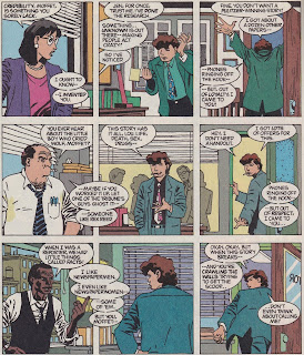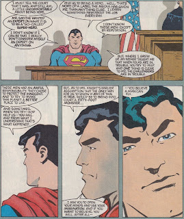 He is able to piece together the disparate stories about disasters all over the world into a coherent narrative, one that points to an even greater disaster to come – N’zrath. He is also able to discover who blew up Challenger Mountain and what his role in the grand scheme of it all is. Moffet is necessary to ground the remaining Challengers and provide them with a focus after they return from their varied voyages of discovery, and he also becomes a crucial part of the finale. Tied into the media’s obsession with the Challengers is the desire for fame. Moffet is famous, to a degree, but he wants more fame, and gets angry when he can’t sell his story to any of the top newspapers. The trial issue, #2, shows this theme most clearly, as the Federal Prosecutor thinks to herself how the trial could get her noticed for a Supreme Court nomination, while Moffet lords over Clark Kent because he’s going to be on television and poor Clark is just a print reporter. The witnesses at the trial all owe their lives and livelihoods to the Challengers, and they enjoy the small amount of fame that comes from living and working in Challengerville. No one can escape this, and even some of the disasters that occur when N’zrath begins his plot to conquer the world reek of a desire to be, at least for a few short minutes, famous. The Challengers themselves are not immune to this – Leslie becomes an actor, after all, and they all were “heroes” at one point, even though they had no powers. By sending them on their respective journeys of discovery, Loeb makes them move beyond that craving for fame and understand the true importance to life.