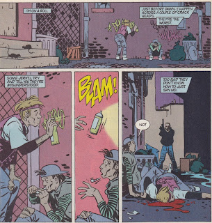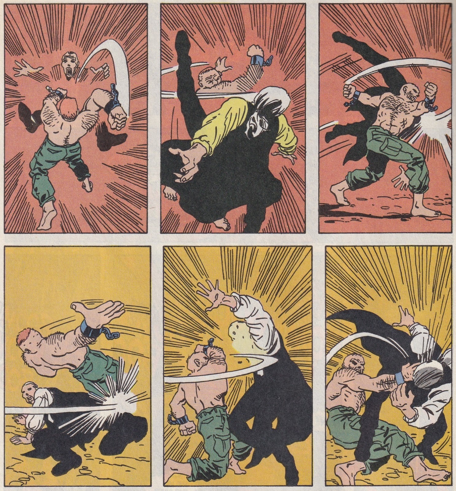Alan Moore, maybe, can get away with overwriting, but as comics is a visual medium, writers have to allow the artist to express things when, in non-graphic fiction, words must do the job. Loeb’s background in movies may have helped with this, because very often in Challengers, he allows Sale to express his ideas without feeling the need to pour words onto the page. In some of his later works, he’s become a bit verbose, and it’s a drag on the flow of the narrative. That’s not to say Loeb isn’t occasionally verbose in this series – he certainly can be – but when he does indulge his love of narrative, it doesn’t overwhelm us, it simply provides necessary information. But in numerous instances, he allows the pictures to tell the story, and as Rod Stewart explained once, that’s not a bad way to go.