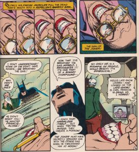 One of the things I love about that Joker story is the way Englehart merged the three most important comic book takes on the Joker. He’s clearly still the Joker who had existed since O’Neil’s Five WAY Revenge story- the one with that interesting mix of sanity and insanity- and you pointed out the similarities with the Joker as he was in his very first appearance, but the Laughing Fish plot is also a kind of dark, twisted re-imagining of the kind of weird plots the Joker used to have in the ’50s.