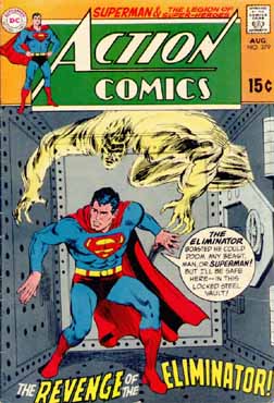 I figured it out early. True, I read it in reprint some forty years back but I think it has more to do with recognizing the similarity with Action #364’s Supergirl story “The Kiss of Death” which came out the previous year. That Otto Binder/Kurt Schaffenberger story has Supergirl investigating why women keep dropping dead after marrying and kissing the mysterious Count Durkla. It turns out all three victims were ruthless killers on their own world; Durkla was an alien executioner carrying out their sentence. It’s not an exact match, but close enough for me to guess the Eliminator’s agenda.