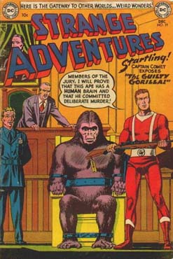 Comet encountered an intelligent, evil gorilla, part of an African tribe of super-apes. Now he’s brought him to trial for a murder committed in that story. The gorilla breaks out and launches a crime spree before Captain Comet takes him down.