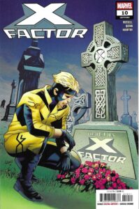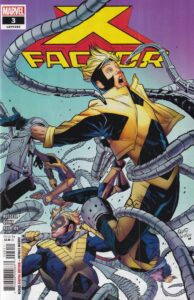 The last canceled book probably had even less of a shot than X-Force, and that’s X-Factor #1-10, which ran from August-May. Marvel wanted it to be satirical, and these days, if you want good satire, you get Mark Russell to write it, so they did. It’s drawn by Bob Quinn, colored by Jesus Aburtov, and lettered by Joe Caramagna. Quinn drew all 10 issues, and it says something about the sad state of comic art speed today that that’s pretty impressive!