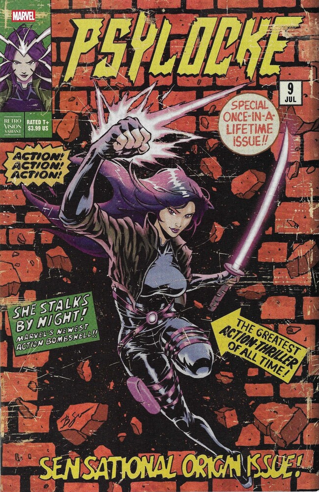 Another “Retrovision” cover, and I love all the uses of “action” on the cover, because it does feel like Marvel and DC used to really go overboard with selling how much action was inside. Again, you have to dig the fake ragged-ness!