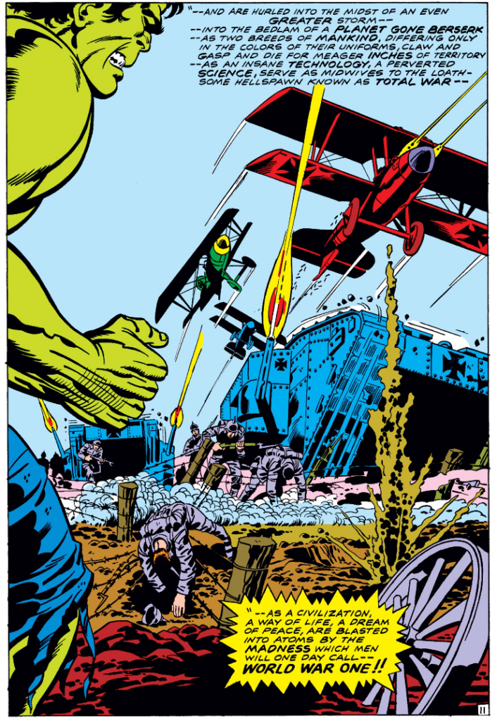 Toth’s art never really works for me but that’s a very cool page. So is this Herb Trimpe page setting the Hulk in WWI.