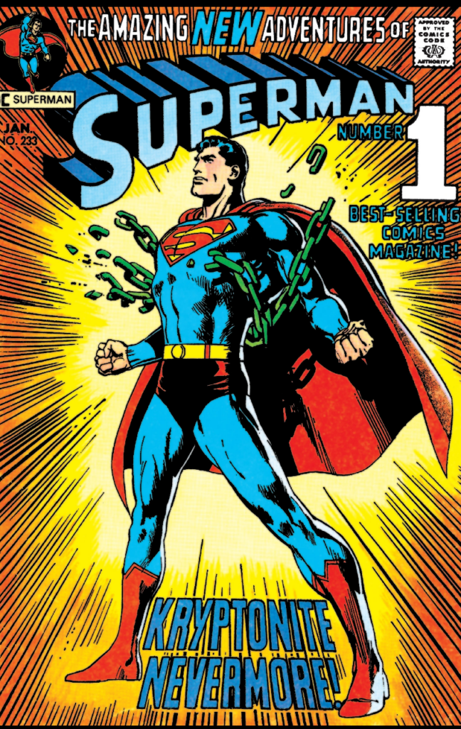When I started reading Superman again a year or two later, it felt like a seismic shift — no kryptonite? Whoa! A later story would wipe out all kryptonite in the rest of the universe, thereby eliminating the possibility of more meteorites landing on Earth.