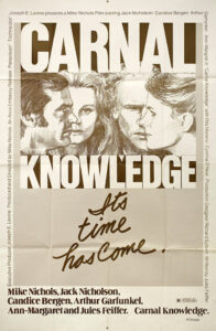 I watched part of Carnal Knowledge, in high school, on Cinemax, but I was too young to appreciate and too bored by the film to watch very much of it.