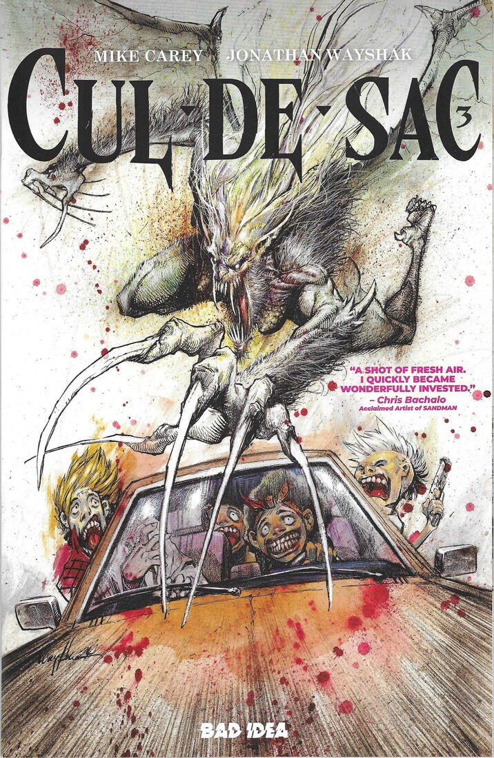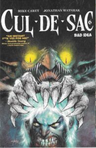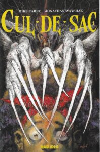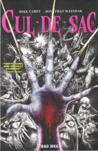 Cul-de-Sac is by Mike Carey (writer), Jonathan Wayshak (artist), and Tom Napolitano (letterer). It’s 6 issues, with various back-up stories (which I assume won’t be in the trade collection).