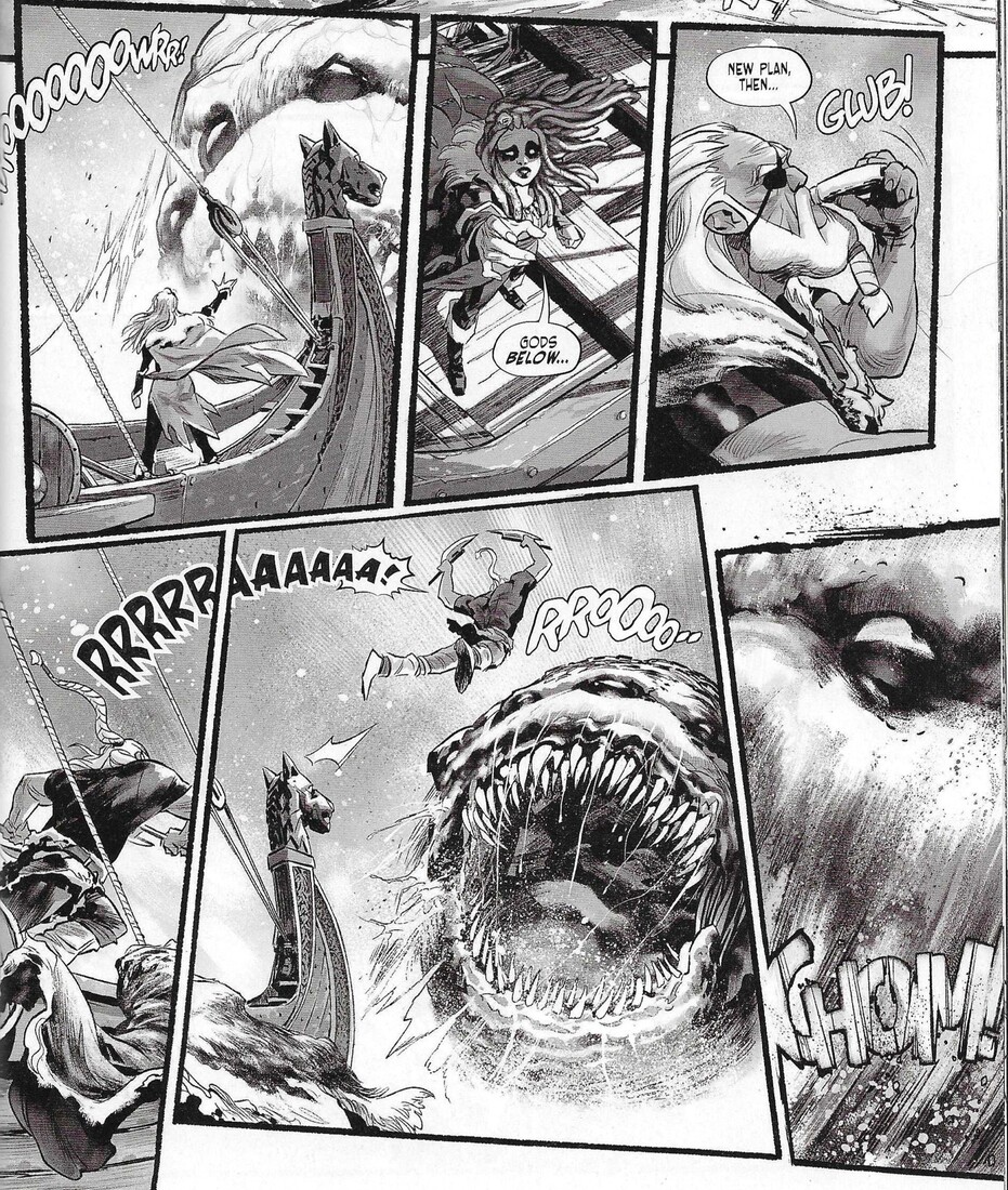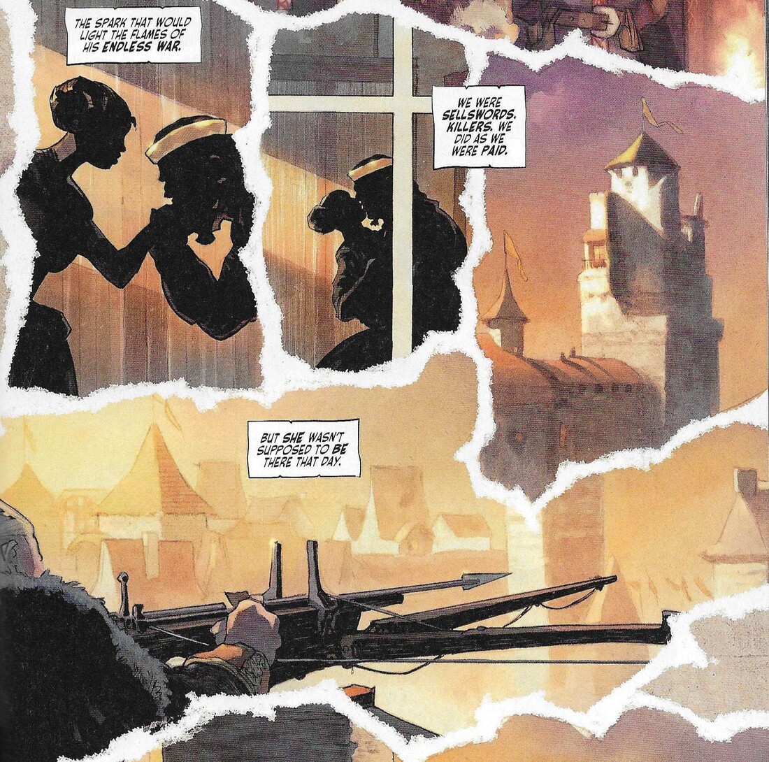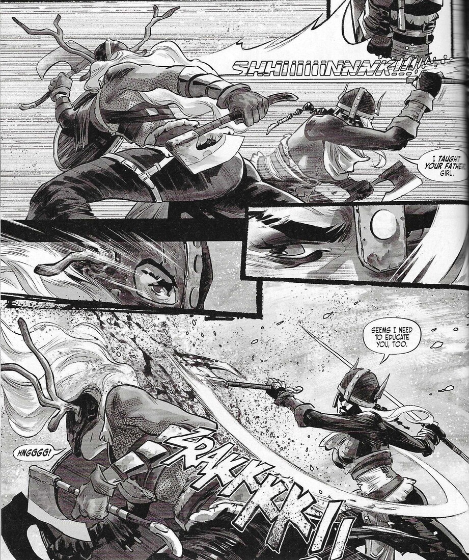 As a medieval history aficionado, the fact that DC decided to do an Elseworlds universe in which their characters are chucked into a medieval world should please me, but I didn’t quite love Dark Knights of Steel, the initial offering of the world. It was ok, but it felt off somewhat, the story had some very severe logical gaps, and it felt like Tom Taylor was trying too hard to establish everything in the world. Allwinter, which is more focused, is much better, and I had more fun reading it. It’s a bit too long and it ends a bit too sappily, but for the most part, it’s a fun adventure. In the far north, it’s always winter (no Game of Thrones similarities here, no sir!), and Deathstroke is hired by a “jarl,” Vandar (Vandal Savage, of course), to capture a “monster,” who turns out to be a young boy in the care of Deathstroke’s ex-wife. Not being a complete bastard, Deathstroke defends the boy and his ex-wife against Vandal’s crew, which is led by Killer Frost. He gets the hell out of Dodge, as the boy claims he will be able to fix the winter (no Frozen vibes here, no sir!) and Deathstroke feels responsible for him, but Vandal simply sends Deathstroke’s daughter, Ravager, after them.
