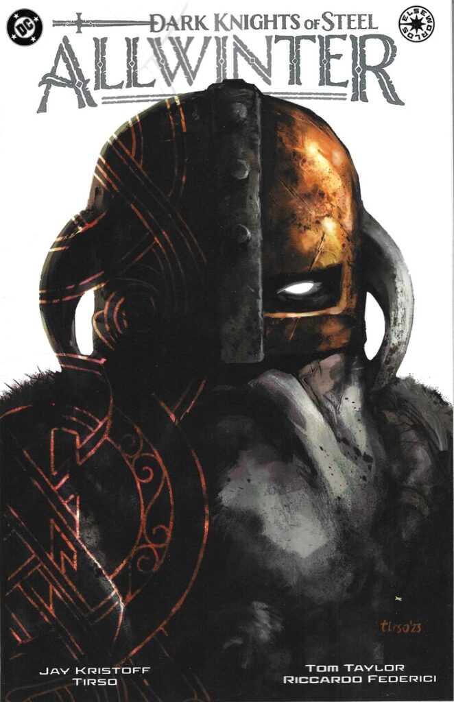 Hey, look at this — it’s DC’s Dark Knights of Steel: Allwinter (with an extra story, “Heir to the Sea”), a sequel to Dark Knights of Steel! This is by Jay Kristoff and Tirso, with the extra story by Tom Taylor, Riccardo Federici, and Arif Prianto. Wes Abbott letters the whole thing, and Andrea Shea is the collection editor.