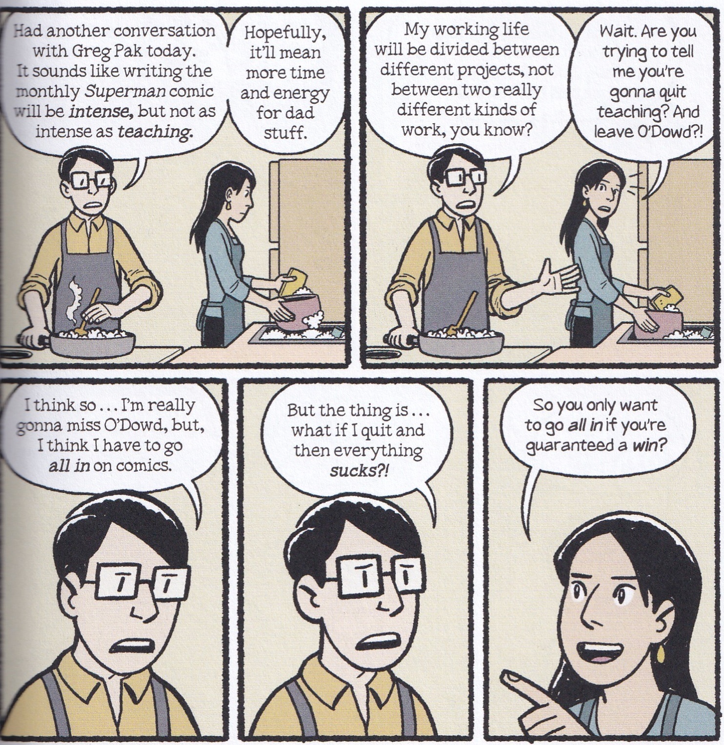 This comes full circle when Yang himself gets the chance to write Superman and decides to embrace writing comics full-time, quitting his teaching job in the process. He makes it clear that he couldn’t have done that without the example the kids on the team set for him.