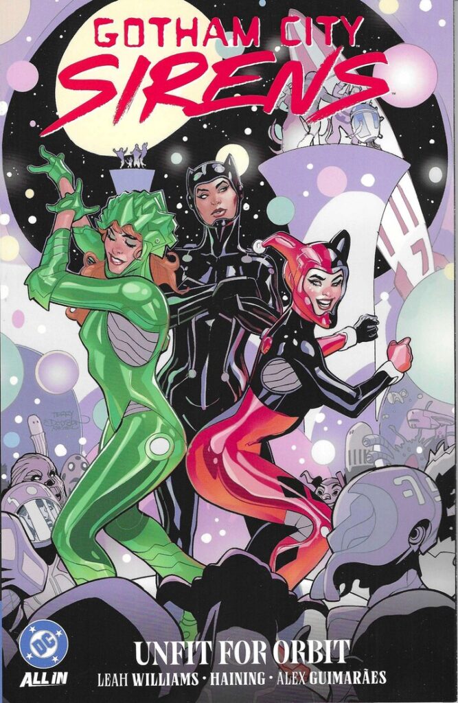 I got the first issue of Gotham City Sirens: Unfit for Orbit and enjoyed it enough to get the trade, which is by Leah Williams (writer), Haining (artist), Alex Guimarães, Ivan Plascencia, Hi-Fi (colorist), Tom Napolitano (letterer), and Arianna Turturro (editor).