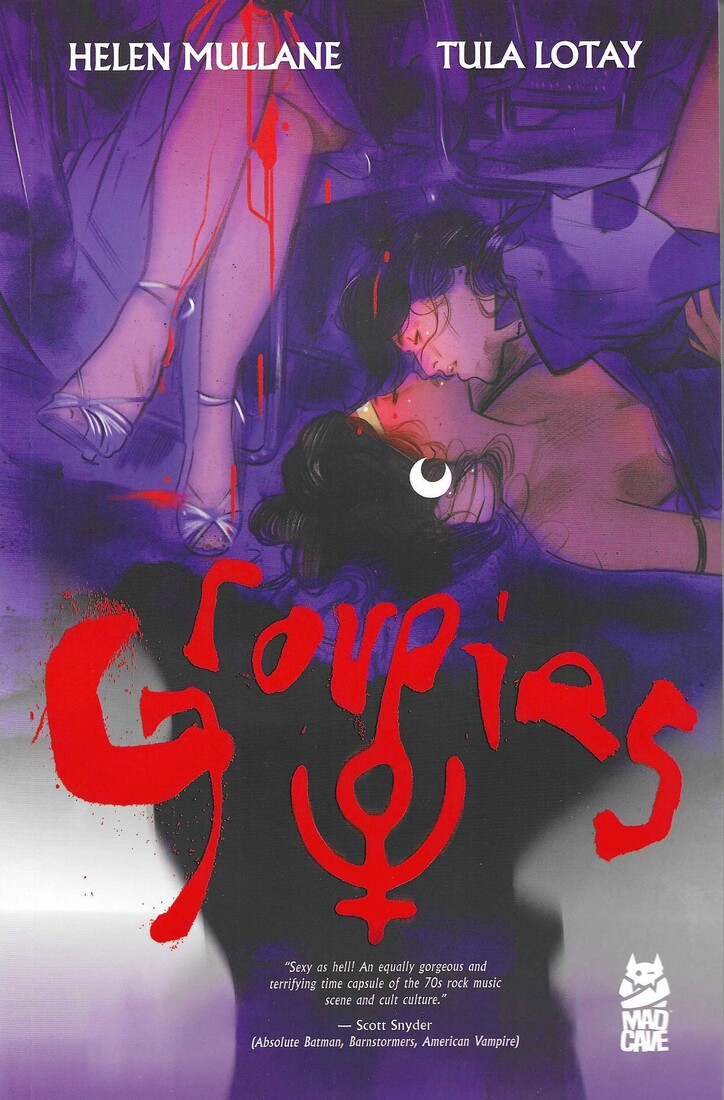 Groupies takes the absolute hoariest of clichés — a rock bang selling their souls to Satan and the groupies who love them — and spins it a bit differently, and that’s not bad. Helen Mullane and Tula Lotay are the writer and artist, while Dee Cunniffe (and Lotay) and Richard Starkings and Tyler Smith provide the coloring and lettering.