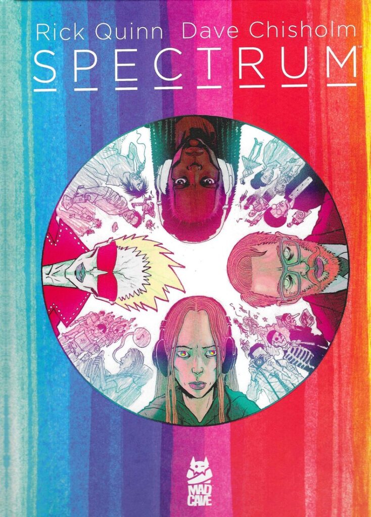 Spectrum is written by Rick Quinn, edited by James B. Emmett, and published by Mad Cave, this hardcover is $39.99, and it’s 139 pages long.
