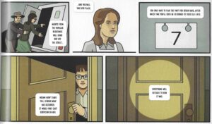 You don’t have to be the sharpest tool in the shed to know that Nadia will begin to lose her identity in Miriam’s, but this is where the Hoeys’ odd narration helps, because as the actual events get a bit more surreal, the narration stays cool and detached, which makes the situations even weirder and more effective. Nadia is interrogated by the security officer, and while the narration tells us that she’s in trouble, it doesn’t come across in the tone of the words. The Hoeys aren’t interested in spelling everything out for their readers, so we’re left wondering how far into Miriam goes Nadia, but that’s part of the unsettling nature of the book. The Hoeys are keener on exploring the idea of identity, and they use a spy thriller to do it. They’re certainly not the first to do it, but they do it in a tonally odd way, which helps the story quite a lot.