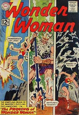 Last of the Omnibus stories is “Wonder Queen’s Surprise Birthday Gift” (Robert Kanigher, Ross Andru) from Wonder Woman #131. Diana’s too busy helping people to find a gift for Hippolyta’s birthday; when she finds time to try, fate continues to thwart her. Finally she smashes a meteor heading toward Paradise Island, discovers it has a diamond core and gives the giant gem to her Mom. Hippolyta lets us know she knows it was an improvised gift, but she’s not going to embarrass her little girl by saying so.