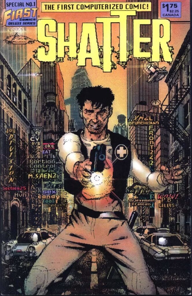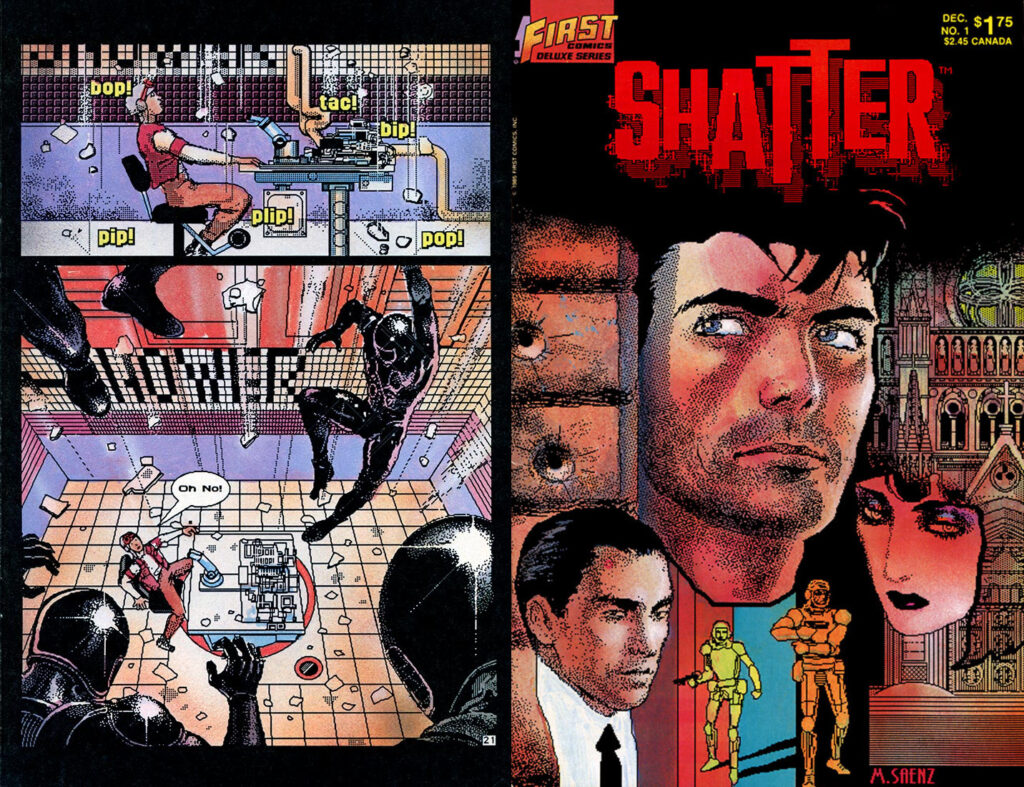 But Shatter as a comic wasn’t really about the story. It was more about the milieu … it was the “first computerized comic!” which in the 1980s meant you were working with stuff like MacDraw.