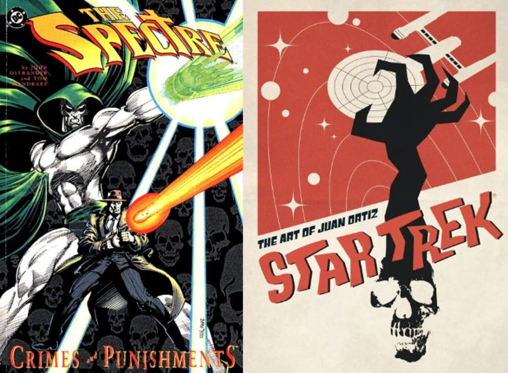 The Spectre: Crimes and Punishments trade paperback collection from 1993, collecting the first four issues by John Ostrander and Tom Mandrake, and with a nice intro from Mr. Ostrander as well. Additionally, the lucky winner will also receive the hardcover art collection Star Trek: The Art of Juan Ortiz.