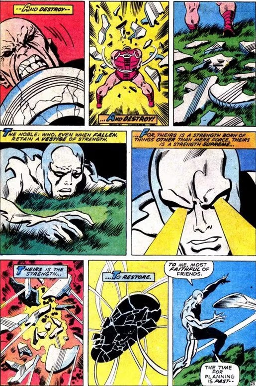 Durok was a mindless construct, a creation of Loki using the stolen Odin-ring. He wasn’t much for strategy … for him it was all about breaking stuff. I bought this one off the stands, way back when, and I have to admit that when youthful me saw him break the Surfer’s board, it was unsettling.