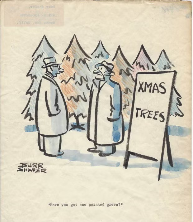 Burr Shafer is largely forgotten today, but throughout the forties and fifties up until his death in 1965, his cartoons could be found everywhere. He was one of the go-to guys for The Saturday Evening Post and The New Yorker. He was most famous for his creation of J. Wesley Smith, a well-meaning doofus who would pop up throughout history to say something inane to famous names of the time.