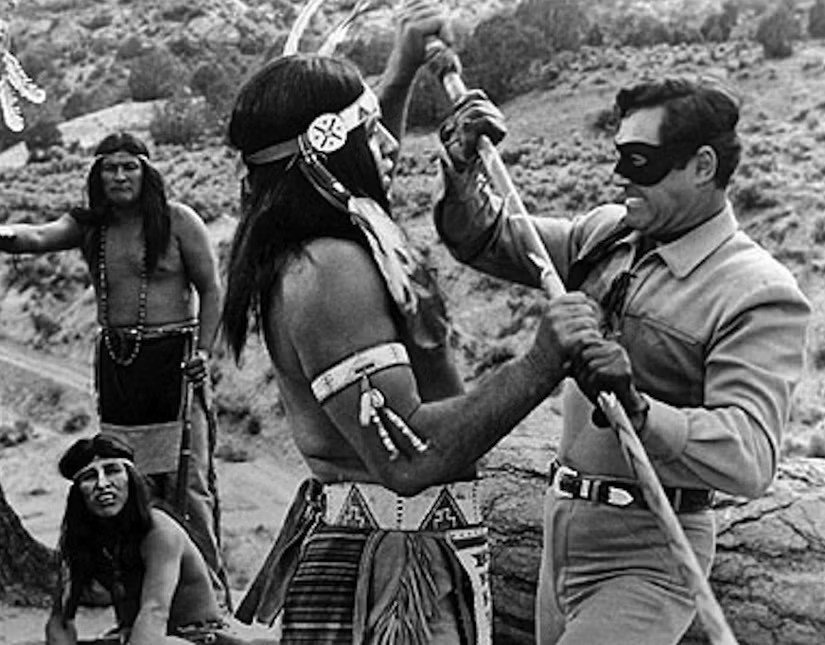 The Lone Ranger and Tonto are riding hard, across the Texas desert.