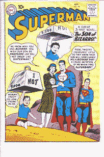 But every so often they’d pull out an amazing book-lengther where you could see the untapped potential that they’d really start hitting later in the decade. This collection gives us “Superman’s Return to Krypton,” which felt like high Shakespearean tragedy when I first read it at the age of nine, and there are a couple of other standouts in here as well. It does get a little numbing reading so many Bizarro stories in a row, though. The Bizarros were apparently quite a hit, because they kept going there for stories: “The World of Bizarros,” “The Son of Bizarro,” “Bizarro Meets Frankenstein,” and so on. I was never a big Bizarro fan. But on the other hand, I adored the bottle city of Kandor and that really came into its own as a plot device during this time as well. So it’s kind of a wash.