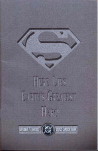 And the most upsetting thing is that none of it counts. There’s no impact at all. These characters are now the equivalent of cannon fodder. Kill ’em, bring ’em back. Or not. Possibly this trend reached its nadir when the much ballyhooed death of Superman came upon us complete with black armbands and little cardboard coffins available at your retailer (and we KNEW he was coming back, so what was the point?)