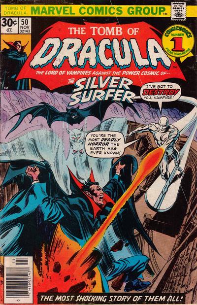 The example also illustrates a principle that I really, really wish more crossover event writers would bear in mind — the idea of heroes staying in their own weight class. It made SENSE for Dr. Strange and Dracula’s paths to cross, they were both in the occult, gothic corner of the Marvel Universe. And the same artist was doing both books, which meant there was a level of backstage fun involved for readers, as well as a seamless transition in visual style from one title to the other. A later adventure, where Dracula met the Silver Surfer, didn’t work nearly as well. (If there’s any character Gene Colan shouldn’t be drawing, it’s the Silver Surfer.)
