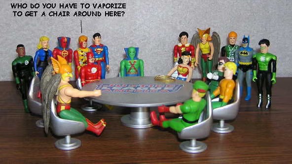 As a member in good standing of various superhero groups, Hawkman attends meetings. Both in the JLA and the JSA, Hawkman was often pictured doing his duty, conscientiously showing up for roll call —
