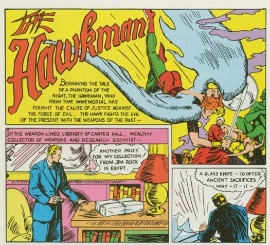Back in the beginning, Hawkman lasted slightly longer than Dr. Fate, certainly; but he never was quite able to carry a book, either.