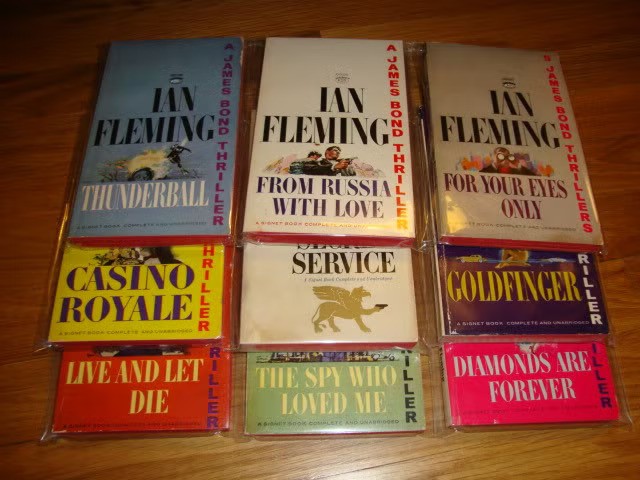 When I was a kid and first starting to buy my own books, most of my Bond novels looked like this. Though I much preferred the look of the Bantam editions with the amazing Frank McCarthy paintings, I knew that the nearly-naked ladies on them would really bother my mother. These illustrations, on the other hand, were so small that the unclad ladies on them went unnoticed. Anyway, when you’re mowing lawns for two dollars a whack, you have to consider that sixty cents for a Signet is a much better deal than the ninety-five-cent Bantam edition would be.