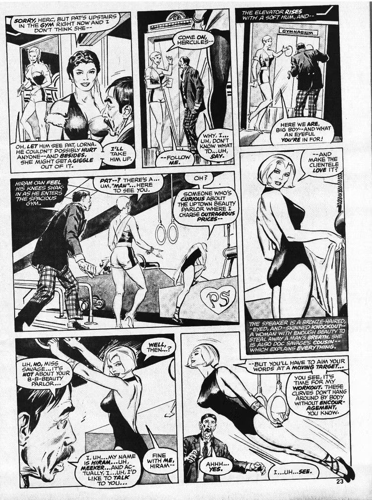 Anyway. Lots of people are going to be talking about DeZuniga’s western and adventure comics, but the one that hit me right between the eyes was his Doc Savage. It was just a few weeks ago I was looking back fondly on the run of Doc Savage that DeZuniga did with Doug Moench. That’s the only time I ever felt like the character actually looked like the super-adventurer promised on the Bantam paperbacks cover copy, and that was all Tony DeZuniga … he took that James Bama painted characterization of Doc and made it move.