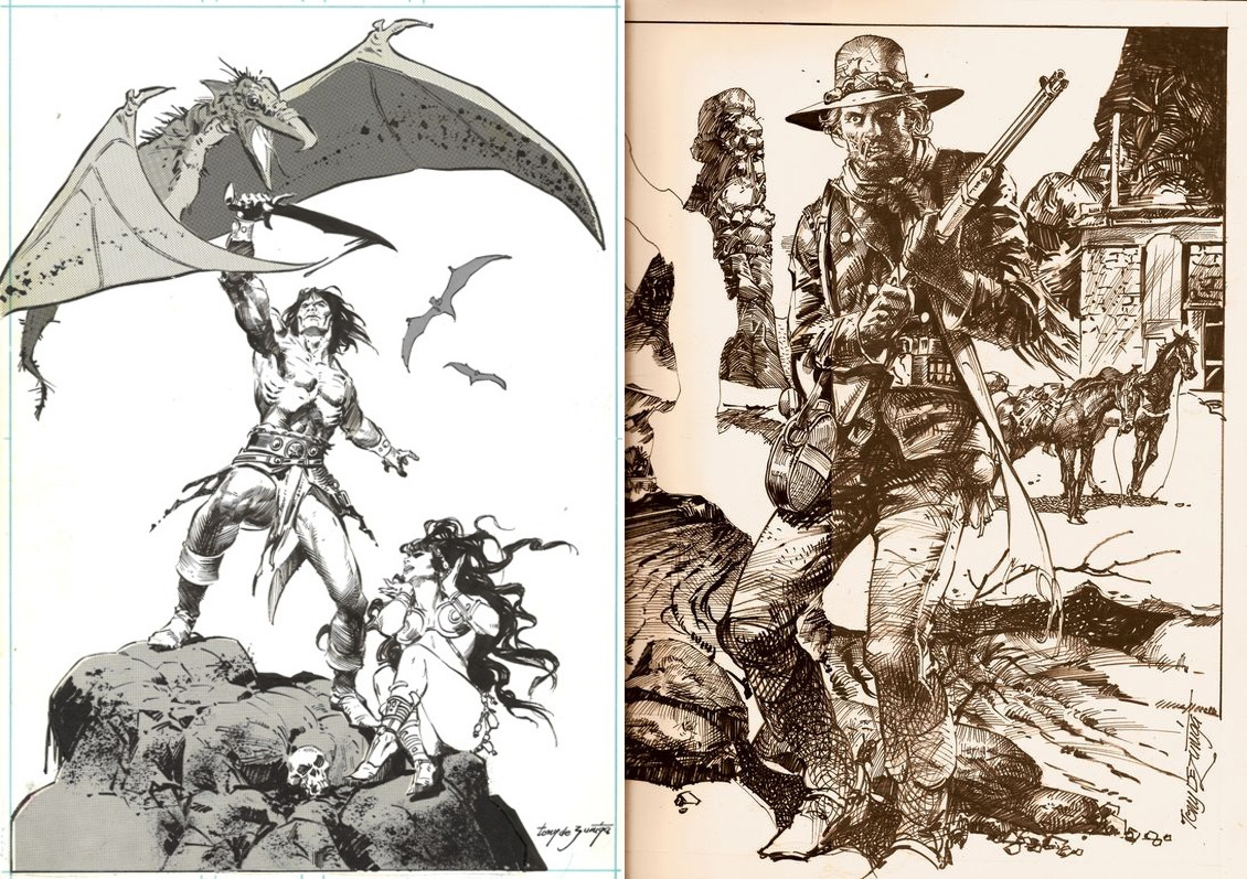 I always have said black-and-white was the best way to see a DeZuniga job, so that’s the way I thought I’d show him depicting his two signature characters. See what I mean? [Edit: Sadly, the Jonah Hex image Greg used is lost, but this one is pretty keen!]