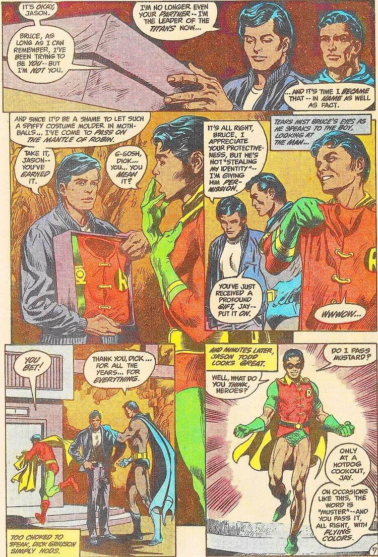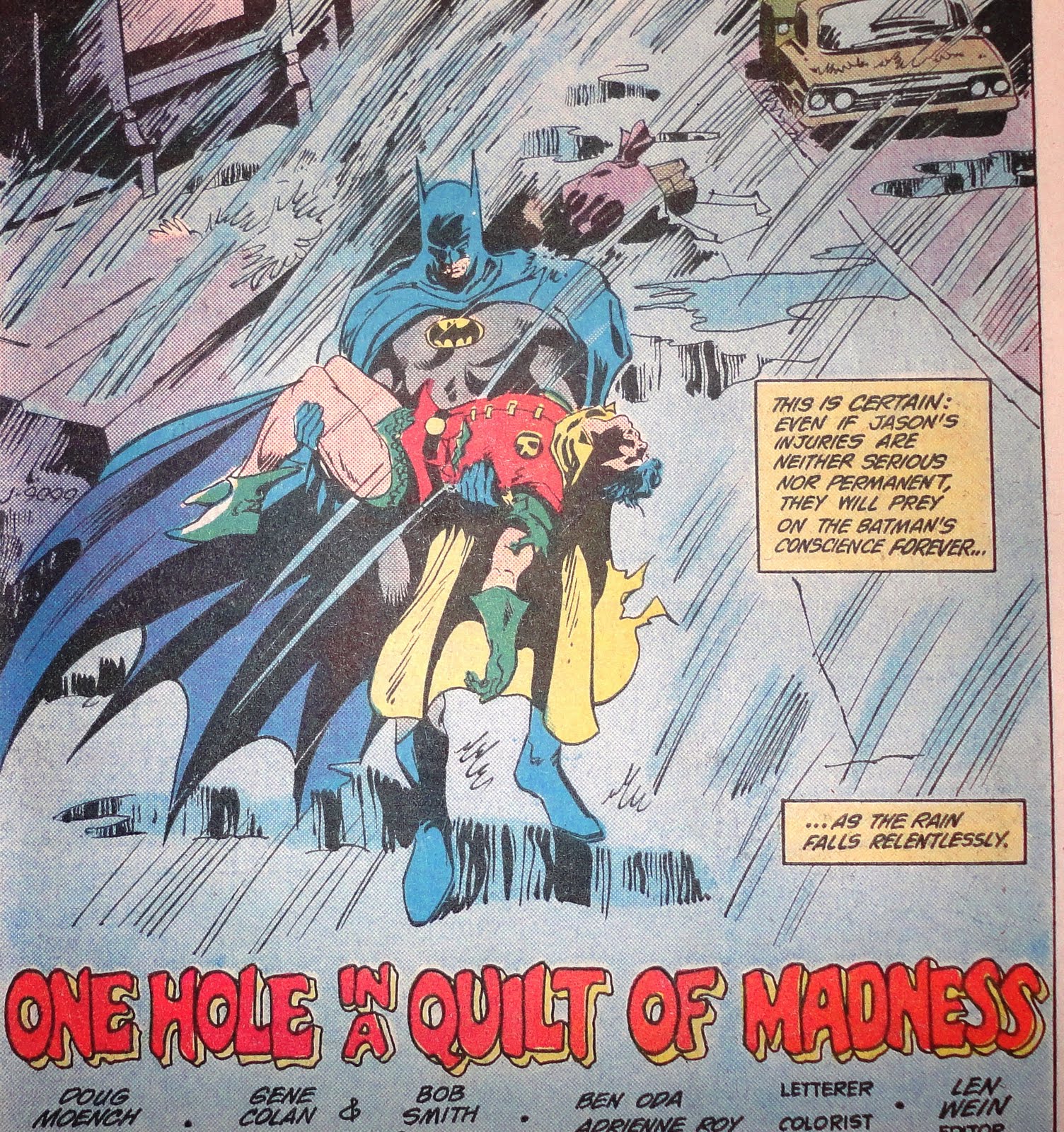 Case in point: this great little two-parter from Doug Moench, Don Newton, and Gene Colan — the (first) debut of Jason Todd as Robin. Batman #368 and Detective #535.