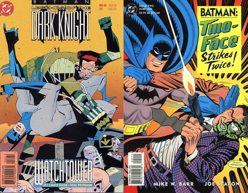 And by then we also had Legends of the Dark Knight, which usually could be depended on to have the real Batman in it and not this Azrael guy. #56 was part two of “Watchtower,” an odd three-parter from Chuck Dixon and Mike McMahon. Much better was the second part of Two-Face Strikes Twice!, a terrific little two-part prestige miniseries from Mike Barr, Joe Staton, and Daerick Gross.