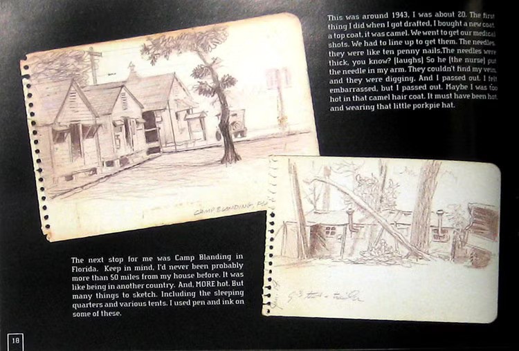 I really need to see that war sketchbook. Cardy earned two Purple Hearts, as an assistant tank driver, with the 3rd Armored Division and also designed the unit patch for the 66th Infantry Division. That is a unique perspective on the war.