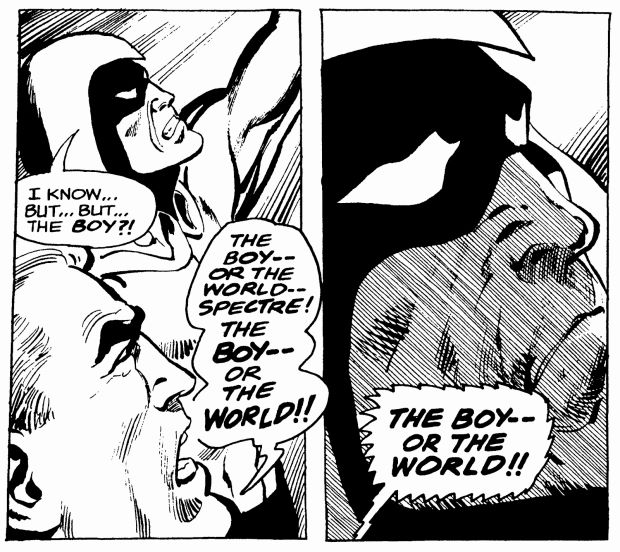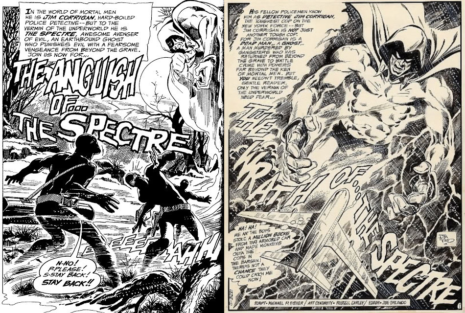I’ve always liked the Spectre, but the one I think of as ‘mine’ is the Fleisher-Aparo version. I never was interested in the Silver Age “Discarnate Detective” that briefly had his own book in the late 1960s. My idea of the Spectre is that he should be scary, not just some sort of ghost supercop.