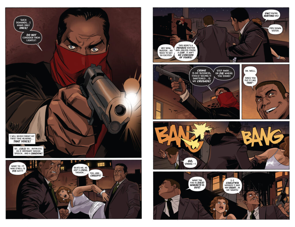 (And the Alec Baldwin movie got a nice comics adaptation from Dark Horse, too, though I don’t really count it. Call that one the Shadow’s comics origin 2.5.)