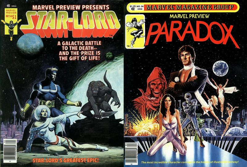 But there were lots of other cool SF comics appearing alongside Star-Lord, sometimes even right there in the same book. So let Star-Lord headline and fill out the rest of the book with the cool stuff from Marvel Preview and Bizarre Adventures. There were all sorts of great science-fiction and fantasy originals that appeared there — I’m thinking particularly of Paradox and Sword in the Star from Bill Mantlo, but there were others.
