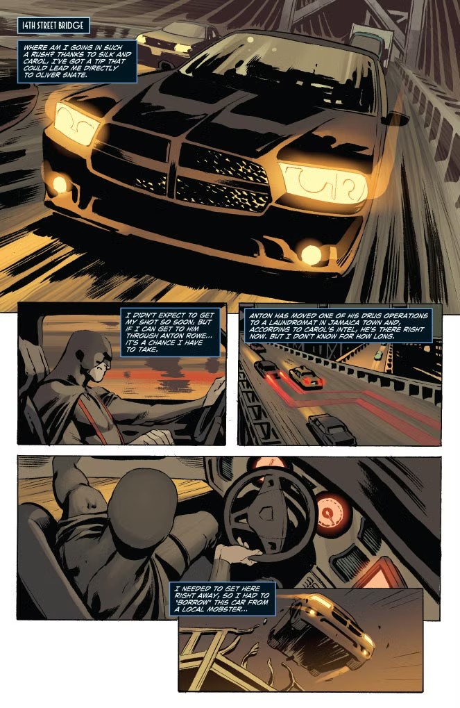 Or here’s another modern example, from Black Bat #3. All the creator info’s set in type on the inside cover, so the story just starts in the middle of the action and there’s no splash page or title page as such anywhere at all.
