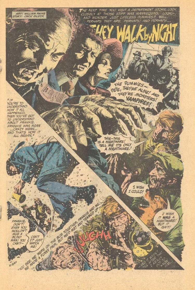 The war and horror books didn’t have the character loyalty that superheroes had, so they had to work harder; especially since the anthology books usually ran several stories in each issue, and thus had to boil a lot of setup down very quickly and plant that hook hard. Here’s an example of that from FORBIDDEN TALES OF DARK MANSION.