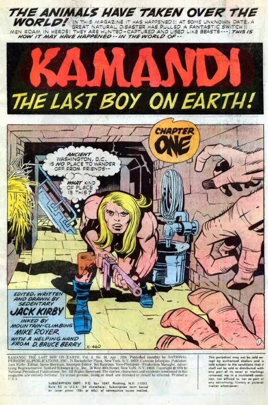 The greatest splash pages DC had in the early 1970s, in terms of closing the sale with a kid, usually came from Jack Kirby and more often then not, they were from KAMANDI. Those splash pages were just vibrating with the promise of awesome. Like this one —