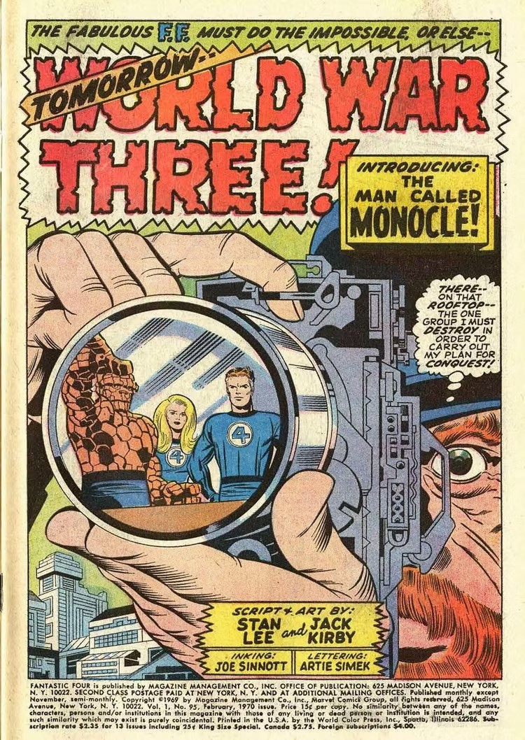 Or the villainous Monocle, here, plotting the demise of the Fantastic Four on this remarkably subdued Jack Kirby page.