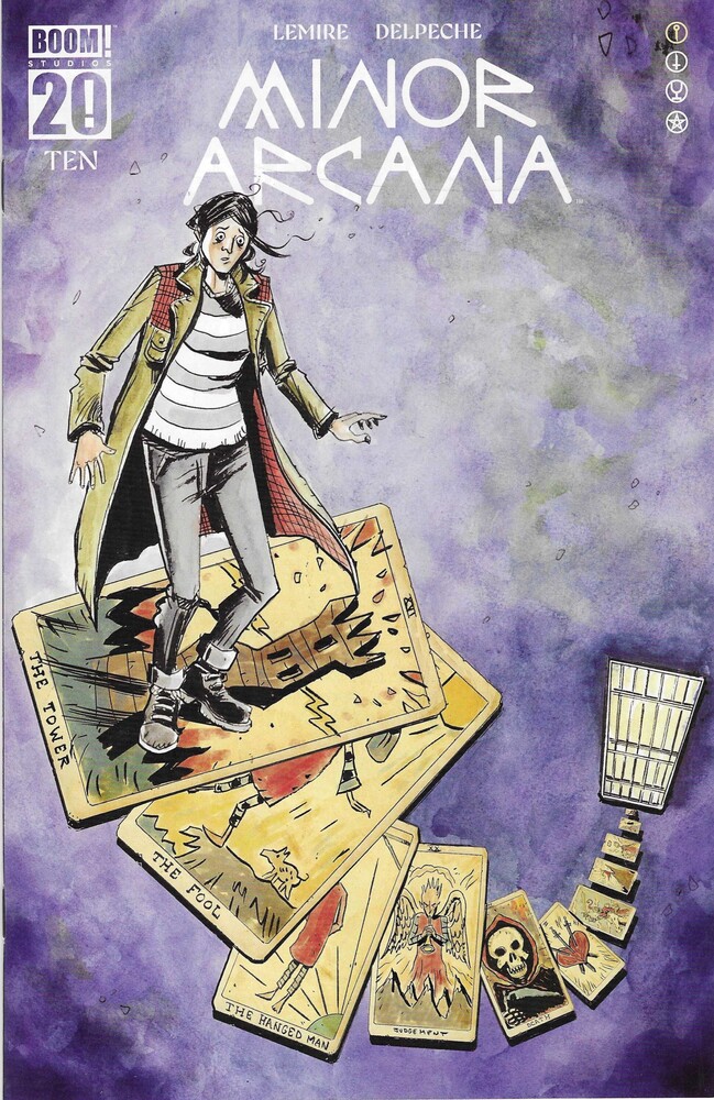 Minor Arcana #6-10 by Jeff Lemire (writer/artist/colorist), Letizia Cadonici (artist), Patricio Delpeche (colorist), Steve Wands (letterer), Eric Harburn (editor), and Matt Gagnon (editor). $24.95, 120 pgs, Boom! Studios.